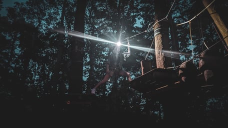 Genieße die Wärme und Geselligkeit inmitten der idyllischen Natur des Kletterwaldes, umgeben von knisternden Kamin und guter Gesellschaft.